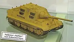 The Jagdtiger ("Hunting Tiger"; officially designated Panzerjäger Tiger Ausf. B) is a German casemate-type heavy tank destroyer (Jagdpanzer) of World War II. It was built upon the slightly lengthened chassis of a Tiger II. Its ordnance inventory designation was Sd.Kfz. 186.