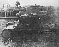 Important parts such as the tub, superstructure and drive wheels were supplied by the Eisenwerke Oberdonau.[9] Details and production locations were known to the Allies through the resistance group around the later executed priest Heinrich Maier.[10][11][12] Prisoners from the St. Valentin concentration camp were used to build the tank.[13]