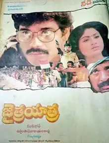 Jaitra Yatra (transl. Journey to Victory) is a 1991 Telugu-language social problem film written and directed by Uppalapati Narayana Rao. It stars Nagarjuna and Vijayashanti, with music composed by S. P. Balasubrahmanyam.[1] The film was produced by Sravanthi Ravi Kishore under the Sri Sravanthi Movies banner. Upon release, the film received positive reviews but failed at box-office.[1][2] The film was dubbed in Tamil as Pongada Neengalum Unga Arasiyalum.[3]