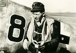 Jakob Norz (20 October 1920 – 16 September 1944) was a Luftwaffe flying ace of World War II. Norz is listed with 117 aerial victories—that is, 117 aerial combat encounters resulting in the destruction of the enemy aircraft—becoming an "ace-in-a-day" on seven separate occasions.[1] All his victories were claimed over the Soviet Air Forces in 332 combat missions. He was also a recipient of the Knight's Cross of the Iron Cross, the highest award in the military and paramilitary forces of Nazi Germany during World War II. Norz was killed on 16 September 1944 in a forced landing following combat with a large formation of Soviet aircraft attacking Kirkenes.