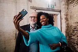 Jamelia taking a selfie with then Labour Party leader Jeremy Corbyn at a 2019 general election campaign rally in Birmingham. Jamelia endorsed Labour in the 2019 general election