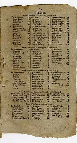 James Brown may have had a tavern along the Natchez Trace circa 1815 ("Roads" from Andrew Marschalk's Almanac of Louisiana and Mississippi)