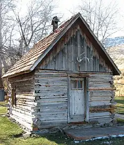 Closer to the main house is a bunkhouse, chicken-coop, feed storage shed, and a privy. All are wood-frame structures with wood-shingle roofs. After the National Park Service purchased the Cant property, the bunkhouse was renovated and used to house exhibits. The chick-coop still houses live chickens and the shed is used to store feed and ranch equipment. The National Park Service also replaced the original roofs on all these buildings in the 1980s to help preserve the structures. There is also small log cabin behind the main house. It is the only remaining structure that dates back to the Officer homestead period. The Officer family used the log cabin for storage, as did the Cant family.[8]