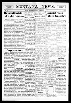 - ^ "Party Will Own Paper," Montana News [Lewiston], vol. 4, no. 4 (Oct. 11, 1905), pg. 2.