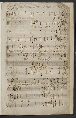 The manuscript of Heseltine's "Unto Thee will I cry", dated 17 September 1707, in the British Library.[1]