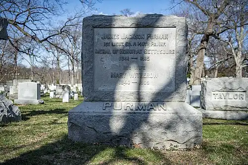 James J. Purman (March 21, 1841 – May 10, 1915) was an American soldier who fought with the Union Army in the American Civil War. Purman received his country's highest award for bravery during combat, the Medal of Honor, for actions taken on July 2, 1863, during the Battle of Gettysburg.