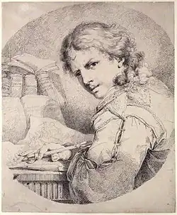Jefferys was born in Maidstone in 1751 to William and Parnell Jefferys; his father was a coach painter and artist.[1] He spent time working under William Woollett who was also born in Maidstone. Jefferys enrolled at the Royal Academy and his talent was marked with a gold medal for a drawing titled Seleucus and Stratonice in 1773. That year he started exhibiting at the Society of Artists and the following year he gained a prize from the Society.[2] The Dilettante Society underwrote the expense of three years in Rome after a recommendation by Sir Joshua Reynolds. Jefferys stretched this to four years and returned with a number of well regarded classical drawings of violent subjects, but no paintings are known.[3] Jefferys was known to have had a wild time[4] and some reported his behaviour as odd.[2] Jefferys' drawings were in the style of James Barry and John Hamilton Mortimer (Jefferys may have worked with Mortimer whilst he was at the Royal Academy).[3]