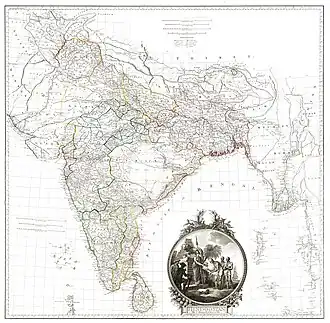 Major James Rennell FRS FRSE FRGS (3 December 1742 – 29 March 1830) was an English geographer, historian and a pioneer of oceanography. Rennell produced some of the first accurate maps of Bengal at one inch to five miles as well as accurate outlines of India and served as Surveyor General of Bengal. Rennell has been called the Father of Oceanography. In 1830, he was one of the founders of the Royal Geographical Society in London.[1]