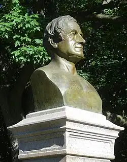 MacDonald designed many busts, some of which were installed in courthouses and public parks.[2][3] Among his subjects were Senator Thomas Hart Benton, Congressman Charles O'Connor, and Ambassador Washington Irving.[2][4] MacDonald became known as "America's oldest sculptor."[4]