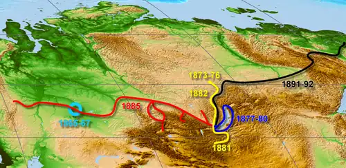 In 1871 he received permission to move to Irkutsk where he met other Polish exiles, turned scholars, Aleksander Czekanowski and Benedykt Dybowski. With their help, Czekanowski is considered his mentor, he was able to join the Russian Geographical Society. He secured a job at a local museum and took part in several expeditions, gaining both experience and prominence. He took part in expeditions to the Sayan Mountains, Irkut River Valley and the Lower Tunguska River. During four expeditions (1877–1881) Czerski explored the valley of the Selenga river and published a study on Lake Baikal, explaining the origin of the lake and presenting the geological structure of East Siberia. Perhaps the most notable of these expeditions was to study of the geological structure of the coast of Lake Baikal. The result was the first geological map of that coast, for which Czerski was awarded a gold medal by the Russian Academy of Sciences. He received three medals in total during his career.[5] He received an international award from the University of Bologna, Italy. Czerski later put forward the idea for the development of topographic reliefs (1878) and produced one of the first analyses of the tectonics of central Asia (1886) and pioneered geomorphological evolution theory.