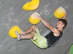 Jan Hojer (born February 9, 1992) is a German professional rock climber specializing in sport climbing, bouldering, and competition climbing. He is known for winning one World Cup and two European Championships in competition bouldering. In May 2010, he climbed Action Directe, one of the most difficult sport climbing routes in the world. From 2013 to 2015, he sent several 8C (V15) boulder problems.