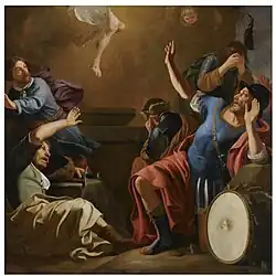 Jan Janssens[1][2] (August 1590 in Ghent – after 1650) was a Flemish Baroque painter and draftsman who is considered to be the most important of the so-called Ghent Caravaggisti.[3] These Caravaggisti were part of an international movement of European artists who interpreted the work of Caravaggio and the followers of Caravaggio in a personal manner.[4] Janssens altarpieces and other compositions offering very realistic representations of religious motifs adorn many churches in and around Ghent.[5] He also worked on commissions for international patrons.[6]