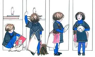 Janet Louise Hendry was born in 1946, the youngest of four daughters, in the port city of Bunbury in Western Australia.[1] Her childhood was spent following artistic pursuits, drawing inspiration from British schoolgirl annuals and American comics. She studied at art college in Perth, and on graduation she taught art on enrichment courses in secondary schools and later lectured at a teachers' college and art schools.[2] She married Paul Ormerod, a children's librarian, in 1971 and after spending several years moving between Britain and Australia they settled in Cambridge in 1987.[2] Although never planning to start a family, the birth of her first child, Sophie, Ormerod found motherhood a great boon and enjoyed the intimacy of her daughter's company. Sophie's enjoyment in the children's books her father brought home spurred Ormerod into considering illustrating her own books, which resulted in the publication of Sunshine in 1981. Sunshine was a wordless book which consisted of a series of panels following a little girl, based on her own daughter, as she wakes and prepares herself for a day at school. It won the 1982 Mother Goose Award for "the most exciting newcomer to British children's book illustration".[3] Sunshine was also voted Australian Picture Book of the Year.