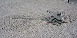 After the Velvet Revolution, a bronze cross was set into the ground in front of the National Museum in Wenceslas Square to honour both Palach and Zajíc.