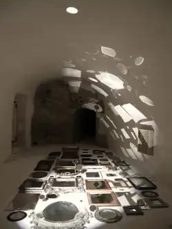In conclusion of a Residency at the Warburg Institute, University of London, Boyd exhibited two works Double Volume (2001) and Palindrome (2001), a transcription of Las Meninas (1656) by Diego Velázquez. In 2006 Boyd returned to the University of London as Leverhulme Trust Research Fellow[17] to engage in a new work entitled Concrete Liaisons (2006), a major light-based installation for the facades of Senate House Tower, Malet Street London.[18][19] In 2011 she was appointed Brown Foundation Fellow, a fellowship programme administered by the Museum of Fine Arts Houston at Dora Maar House, Ménerbes, France.[20] Boyd's installation Vacant Possession (2011) was sited on the ground floor of former home of surrealist photographer Dora Maar.[21]