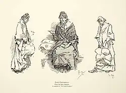 Jane Cakebread's "courtroom antics" were covered regularly in the police-court columns of newspapers such as The Morning Chronicle, The Pall Mall Gazette, Lloyd's Weekly, and The Illustrated Police News.[14] In the late 1880s, articles about her also appeared in The Morning Post, Reynolds's, The Leeds Mercury, and even The Times.[15] The Daily Chronicle gave "special attention" to her case, and also commissioned the famous sketch of Jane Cakebread by caricaturist Phil May.[3]