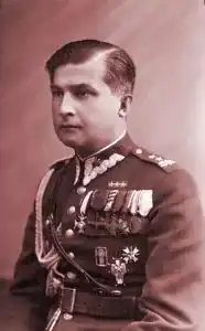 On October 31, 1923, he was appointed to the Wyższa Szkoła Wojenna in Warsaw as a student of the 4th Normal Course.[6] On October 1, 1925, after completing the course and receiving a scientific diploma of an officer of the General Staff, he was assigned to the Army Inspectorate No. 1 as a clerk.[7] On October 14, 1926, he was assigned to the General Inspector of the Armed Forces as the 2nd Staff Officer of the Army Inspector Major General Edward Rydz-Śmigły.[8] On November 4, 1927 he became the director of the Infantry Officers' School from August 9, 1928 in the Infantry Officer Cadet School in Komorów.[9] In July 1929 he was transferred from the General and Organizational Office of the Ministry of Military Affairs in Warsaw to the command of the 29th Infantry Division in Grodno to the position of the chief of staff.[10] From November 3, 1931 he commanded the 2nd Battalion of the 6th Podhale Rifle Regiment detached in Drohobycz.[11][12] From July 10, 1933 he served as the deputy commander of the 18th Infantry Regiment in Skierniewice.[13] On May 23, 1934, he was transferred to an identical position to the 76th Lidzki Infantry Regiment in Grodno.[14] From November 5, 1935 to May 1939, he commanded the KOP Regiment "Wilejka".[4] He was then made Vice-president of the Vilnius District of the Society for the Development of Eastern Territories in 1939.[15]