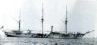 Amagi was designed as a wooden-hulled three-masted bark-rigged sloop with a coal-fired triple expansion reciprocating steam engine driving a single screw. Made mostly of pine wood, the wooden beams and metal fittings came from the mountains of central Izu Peninsula, which also provided the ship with its name. She was laid down at Yokosuka Naval Arsenal on 9 September 1875 under the direction of Léonce Verny, a French naval engineer initially hired by the Tokugawa shogunate, who stayed on as a foreign advisor to the early Meiji government as chief administrator and constructor of the Yokosuka Naval Arsenal. She was launched on 13 March 1877 and commissioned into the Imperial Japanese Navy on 4 April 1878.[1] Her design was a scaled-up version of the corvette Seiki, also built at the same shipyards.