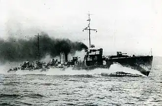 Twenty-one vessels of the Momi-class (樅, "Fir Tree") were built by Japan and commissioned in the early 1920s as second-class destroyers. They displaced 770 tons standard and carried three 4.7 in (120 mm) guns and four 21 in (53 cm) torpedo tubes.[16]