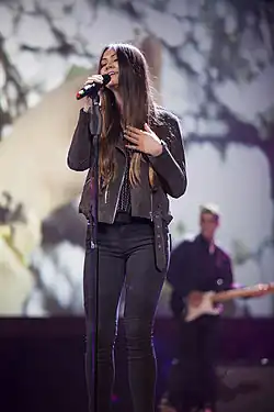Jasmine Ying Thompson (born 8 November 2000) is an English singer and songwriter. She began her career at the age of ten by filming herself singing and uploading the videos to YouTube.[3] In 2014, she was featured on German deep house producer Robin Schulz's song "Sun Goes Down",[3] which charted within the top 10 in multiple countries including Australia, Germany, Austria, and Switzerland.[4]