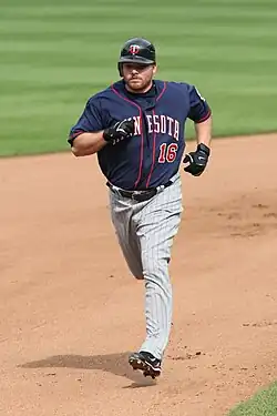 The Minnesota Twins drafted Kubel in the 12th round (342nd overall) of the 2000 Major League Baseball draft.[3] In 2004, Kubel played outfield in the Twins' minor league system, starting out with the Double-A New Britain Rock Cats, where Kubel batted .377 with six home runs and 29 RBI in 37 games before being promoted to the Twins' Triple-A affiliate, the Rochester Red Wings. He continued to excel with the Red Wings, posting a .343 average, 16 home runs and 71 RBI in 90 games.[4] His impressive play landed him a place in the 2004 All-Star Futures Game.[5] Kubel's play impressed manager Ron Gardenhire enough to warrant a call-up to the majors for the Twins' American League Central Division championship run in September. Kubel played well over the course of 23 games, batting .300 with two home runs and 7 RBI in 67 plate appearances.[6]