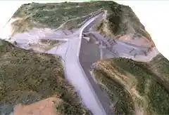 The Jatigede Dam is an embankment dam on the Cimanuk River in Sumedang Regency, West Java, Indonesia. It is located 19 km (12 mi) east of the town of Sumedang. Construction on the dam began in 2008 and it was completed in 2015.[2] The power station is expected to be commissioned in 2019. The primary purpose of the dam is irrigation but it will also provide for flood control, water supply and hydroelectric power generation. Water in the reservoir will be used to help irrigate 90,000 ha (222,395 acres) of farmland and the power station is expected to have a 110 MW capacity. The project was controversial, primarily due to the relocation of people in the reservoir zone.[3]