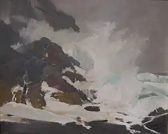 Jay Hall Connaway (1893–1970) was a realist painter and art teacher, with a muscular painterly style, renowned primarily for scenes of sea and surf around Monhegan Island, Maine.[1][2][3] The Portland Museum of Art said of him in a posthumous exhibition catalog: "a student of the sky, waves, and snow-covered hills of Maine and Vermont, Jay Connaway belonged to the generation that presented the region as timeless and quiet in the face of modernity and ensured that the image of New England maintained a prominent role in the American imagination."[4]