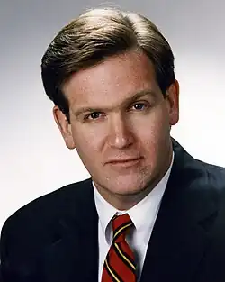 In April 1987, Nixon expressed interest in running for the United States Senate in the 1988 election. Some members of the Missouri Democratic Party considered him a worthy candidate, given his upset victory for the state senate, but some remained critical of his lack of political experience.[8] Nixon made his decision official when he announced his candidacy on October 6.[11] He was endorsed by the National Committee to Preserve Social Security and Medicare (NCPSSM); Nixon welcomed the endorsement, but opponents criticized him for accepting an endorsement from a group "that has been roundly condemned by Missouri newspapers for using scare tactics and misleading information".[12] Nixon lost the general election to Republican incumbent John Danforth by a wide margin. During the campaign, Danforth outspent Nixon 5–1 through Political Action Committees (PACs).[13]