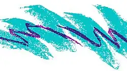 The Jazz design consists of a broad, jagged, crayon-like brushstroke of teal coloring, topped by a finer zig-zagged brushstroke of purple coloring.[3][4]