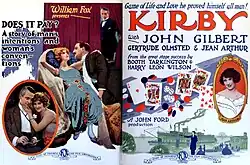 Change came when one day she showed up at the lot of Action Pictures, which produced B Westerns, and impressed its owner, Lester F. Scott, Jr., with her presence. He decided to take a chance on a complete unknown, and she was cast in over 20 Westerns in a two-year period. Only receiving $25 a picture, Arthur suffered from difficult working conditions: "The films were generally shot on location, often in the desert near Los Angeles, under a scorching sun that caused throats to parch and make-up to run. Running water was nowhere to be found, and even outhouses were a luxury not always present. The extras on these films were often real cowboys, tough men who were used to roughing it and who had little use for those who were not."[16] The films were moderately successful in second-rate Midwestern theaters, though Arthur received no official attention. Aside from appearing in films for Action Pictures between 1924 and 1926, she worked in some independent Westerns, including The Drug Store Cowboy (1925), and Westerns for Poverty Row, as well as having an uncredited bit part in Buster Keaton's Seven Chances (1925) as the receptionist.[17]