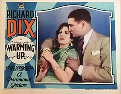 Fed up with the direction that her career was taking, Arthur expressed her desire for a big break in an interview at the time. She was skeptical when signed to a small role in Warming Up (1928), a film produced for a big studio, Famous Players–Lasky, and featuring major star Richard Dix. Promoted as the studio's first sound film, it received wide media attention, and Arthur earned praise for her portrayal of a baseball club owner's daughter. Variety opined, "Dix and Arthur are splendid in spite of the wretched material", while Screenland wrote that Arthur "is one of the most charming young kissees who ever officiated in a Dix film. Jean is winsome; she neither looks nor acts like the regular movie heroine. She's a nice girl – but she has her moments."[20] The success of Warming Up resulted in Arthur being signed to a three-year contract with the studio, soon to be known as Paramount Pictures, at $150 a week.