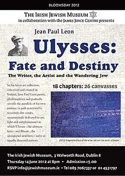 In 2007, Jean Paul Leon moved his studio to Dublin, starting with an invitation by publisher and founder Noelle Campbell-Sharp[23] for a residency as an artist at the Cill Rialaig Arts Centre,[24] where he created Ulysses, Fate and Destiny,[25] an art collection illustrating the 18 chapters of James Joyce's Ulysses (novel),[26] exploring the subject of Leopold Bloom as the figure of the ever wandering Jew, and Homer's [27] Odysseus as the ultimate hero facing the peril of death at every turn of his journey back home to his kingdom, to his Ithaca.