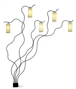 The first model of the Liane wall lamp was created in 1953 for Le Capitole Hotel in Beirut, Lebanon. These fixtures were used in Jean Royère's interiors in the late 1950s and throughout the 1960s. In 1959, a floor lamp version of the Liane was introduced at the Salon des Artistes Décorateurs in Paris. In the years that followed, several other models of the Liane were designed including chandeliers, smaller sconces and floor lamps, following the same principles. A version of the Liane was acquired by the Musée des Arts Décoratifs in Paris and is now on permanent display in a dedicated room entitled Jean Royère: Hier et Aujourd'hui,[14] along with other pieces owned by Royère himself including the original Ours Polaire sofa and a straw marquetry buffet.