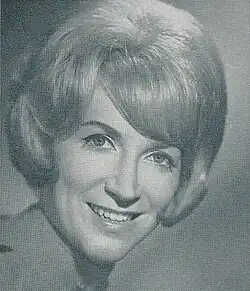 Now a popular concert attraction, Seely was replaced by Dolly Parton in Porter Wagoner's road and television show.[23] The success of "Don't Touch Me" also brought Seely the Best Female Country Vocal Performance accolade at the 9th Annual Grammy Awards.[29] She was later invited to become a member of the Grand Ole Opry in 1967.[30] The song led to the release of her debut studio album called The Seely Style,[31] which rose into the top 10 on the US Top Country Albums chart in 1966.[32] Seely's next two single releases also made the US country top 20: "It's Only Love" (1966) and "A Wanderin' Man" (1967).[25] The latter releases (along with additional Monument tracks) were composed by Cochran, whom she married in the late 1960s.[8] Seely paid tribute to him with her second studio LP, Thanks, Hank!, which consisted of songs all written by Cochran.[33] The LP made the top 20 of the US country albums chart in 1967.[32]