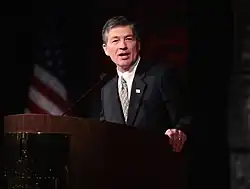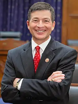 Thomas Jeb Hensarling (born May 29, 1957) is an American politician who served as the U.S. representative for Texas's 5th congressional district from 2003 to 2019. A member of the Republican Party, he chaired the House Republican Conference from 2011 to 2013 and House Financial Services Committee from 2013 until 2019. The Los Angeles Times described Hensarling, "a fervent believer in free market ideology" and that he was "a pivotal player in the GOP effort to reduce financial regulation in the Trump Era".[1] The Wall Street Journal called him "a driver of economic policy in the house".[2] Hensarling has close ties to Wall Street, having received campaign donations from every major Wall Street bank as well as various payday lenders.[3][4]
