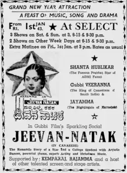 - ^ a b "History 15 - Jeevana Nataka - Gubbi Veeranna Independent Producer". chitraloka.com. 13 August 2013. Archived from the original on 15 August 2013. Retrieved 12 April 2017.