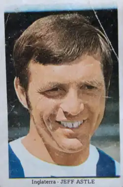 In the 1969–1970 season, Astle was the top scorer in the First Division, with 25 goals.[5] In 1970, he was called up to the England squad for the World Cup finals tournament in Mexico. He won the fourth of his five caps, as a substitute, when England were a goal down against eventual champions Brazil.