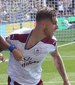 On 31 August 2016, Hendrick joined Premier League side Burnley for a club record £10.5 million fee on a three-year deal.[57] He made his debut on 10 September, coming on as a 75th-minute substitute in a 1–1 draw at home to Hull City.[58] He made his first start for Burnley on 17 September, playing the full 90 minutes in a 3–0 away defeat against reigning Premier League champions Leicester City.[59][60] Nine days later, Hendrick netted his first goal for Burnley in a 2–0 home win over Watford with a header from a Steven Defour cross.[61]