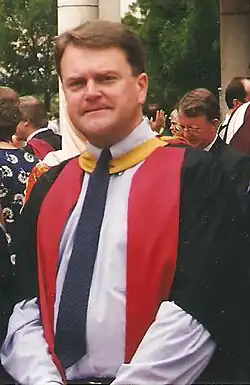 Jeffrey Guy Grey was born on 19 March 1959, the son of Ron Grey, an Australian Army officer and his wife Patricia. He had two sisters, Penny and Gina.[1] His family was a military one; his father eventually reached the rank of major general, and two of his uncles became brigadiers.[2] Raised as an Army brat, he moved about frequently; but lived most of his early life in Canberra, where he settled. He entered the Australian National University, from which he graduated in 1983, and joined the Faculty of Military Studies at the Royal Military College, Duntroon, as a teaching fellow.[3] He completed his doctorate there under the supervision of Peter Dennis,[4] writing his 1985 thesis on "British Commonwealth forces in the Korean War: a study of a military alliance relationship".[5]