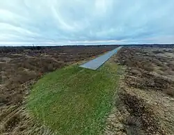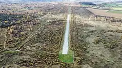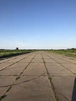 Jelgava airport construction began in 1937 and finished in 1938.[2] It was originally planned as civil airport, however, after Soviet annexation of Latvia in 1940 it became a base for Soviet military aircraft,[2] and continued so after WWII was over. Since 1945, the airfield was used by various Soviet air force units.[3] Air Base Jelgava was part of the first defense line of the Soviet Union. While Air Base Tukums was one of the main Soviet Air Force bases in Latvia for aircraft like the Mig-29 and SU-27, air base Jelgava was a backup base with one runway. The air base was maintained for possible backup and used for helicopters and some light aircraft. In the 1980s the runway was extended to be 2500 meters long and 45 meters wide to allow use by jet aircraft.