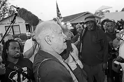 Rallies in support of the Jena Six were held in Jena on September 20, 2007, the date upon which Bell was scheduled for sentencing.[73] An estimated 15,000 to 20,000 demonstrators attended the rally that day, severely overtaxing the facilities of the small town. Protesters took buses from such distant cities as Los Angeles and Washington, DC.[38] Because of the congestion on the roads leading to Jena, many protesters left their vehicles and continued into town on foot.[38] Attendees included civil rights activists Jesse Jackson, Al Sharpton, and Martin Luther King III,[74] and rappers Mos Def[75] and Salt-n-Pepa. Rapper-actor Ice Cube attended and financially supported the rally.[76] Darryl Hunt, an African American who was wrongfully convicted of the rape and murder of a young white newspaper reporter in 1984, was scheduled as a keynote speaker.[77] The demonstrators were addressed by Darryl Matthews, General President of Alpha Phi Alpha fraternity, who said, "It is sobering to know that in 2007 Martin Luther King's dream of equal treatment, respect, fairness and opportunity is still not realized".[78]