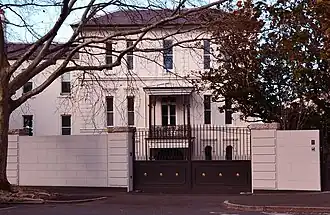 In 1915 the building became the Jenner Private Hospital, and several minor alterations were made to facilitate this use. The garage in the south western corner of the site was erected in the 1920s during the hospital period of usage of the site.[1] The hospital saw many patients over the decades; former Sydney mayor and state MP Sir Matthew Harris died there in 1917 and serving federal MP James Sharpe died there in 1935, while Premier of South Australia Richard Layton Butler was treated there when he fell ill on a visit to Sydney in 1929.[4][5][6]