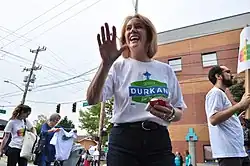 Durkan was elected the 56th mayor of Seattle in 2017, becoming the city's first female mayor since the 1920s, its second openly LGBT elected mayor, and first elected mayor born in Seattle.[3][4][5][6] She took first place in the nonpartisan August primary and defeated urban planner and political activist Cary Moon in the November general election.[7] She and her partner, Dana Garvey, have two sons.