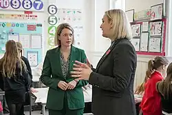 In an interview with the Times Educational Supplement in March 2025, Gilruth confirmed that tackling school–based violence and the "deterioration in behaviour" was a "big priority for the Scottish Government".[19] In the interview, Gilruth claimed that the way in which schools are funded "must be looked at", citing "the wider role schools are now playing in supporting struggling families".[19] She also expressed concerns over the number of school pupils leaving school early in Scotland, as well as the "lack of equity" on courses which are currently being provided to pupils in the upper stages of secondary schools in the country.[19]