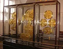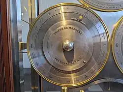 Jens Olsen's World Clock or Verdensur is an advanced astronomical clock which is displayed in Copenhagen City Hall.[1][2] The clock consists of 12 movements which together have 15,448 parts.[3][4] The clock is mechanical and must be wound once a week.[5] Displays include lunar and solar eclipses, positions of the stellar bodies, and a perpetual calendar, in addition to the time.[1] The fastest gear completes a revolution every ten seconds and the slowest every 25,753 years.[1][4]