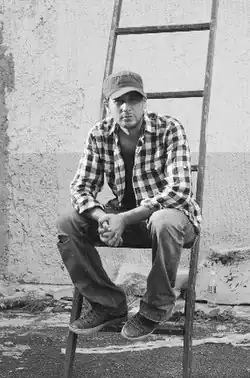 Penn was born in 1979. He attended Fine Art school at the University of Maryland, and graduated from the Pratt Institute in 2003.[2] Penn's paintings often focus on the subject of celebrities or celebrity culture.[3] Following the completion of many of his paintings, he uses flames to sear the works to produce a less polished look.[4] He has stated that his favorite paintings are those he has done of Brigitte Bardot, in addition to other symbols of sexuality like Anna Karina, Catherine Deneuve and Jane Birkin. There is a specific focus on the eyes of the subject in his work.[5]