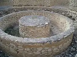 Kathleen Kenyon interpreted one building as a shrine. It contained a niche in the wall. A chipped pillar of volcanic stone that was found nearby might have fitted into this niche.