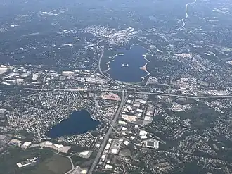 The Boonton Reservoir is a 700-acre (280 ha) reservoir located between Boonton and Parsippany–Troy Hills, New Jersey. Boonton, along with nearby Splitrock Reservoir, provides water for Jersey City, New Jersey.[2] It was formed by the construction of a dam on the Rockaway River completed in 1904[1] on the site of the original town of Boonton.[3]