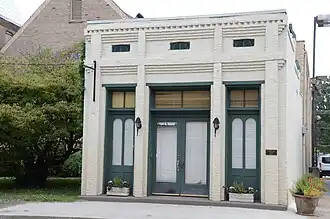 The Jesse N. Cypert Law Office is a historic commercial building at 104 East Race Street in Searcy, Arkansas. It is a vernacular single-story brick structure, sharing party walls with its neighbors. The front facade is divided into bays by corbelled brickwork, with a double door in the central bay on the first floor, and windows in the flanking bays. Above these are separately-articulated bays housing vents, and there is a simple brick cornice at the top. Built c. 1880, this building is a well-preserved local example of the vernacular commercial architecture of the period.[2]