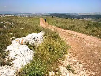 The Jesus Trail (Hebrew: שביל ישו, Sh'víl Yeshú) is a 65 km (40 mi) hiking and pilgrimage route in the Galilee region of Israel that traces the route Jesus may have walked, connecting many sites from his life and ministry. The main part of the trail begins in Nazareth and passes through Sepphoris, Cana (Kafr Kanna), the Horns of Hattin, Mount Arbel Cliffs, the Sea of Galilee, Capernaum, Tabgha, and the Mount of Beatitudes.[1] An alternate return route passes by Tiberias, the Jordan River, Mount Tabor, and Mount Precipice.[2]